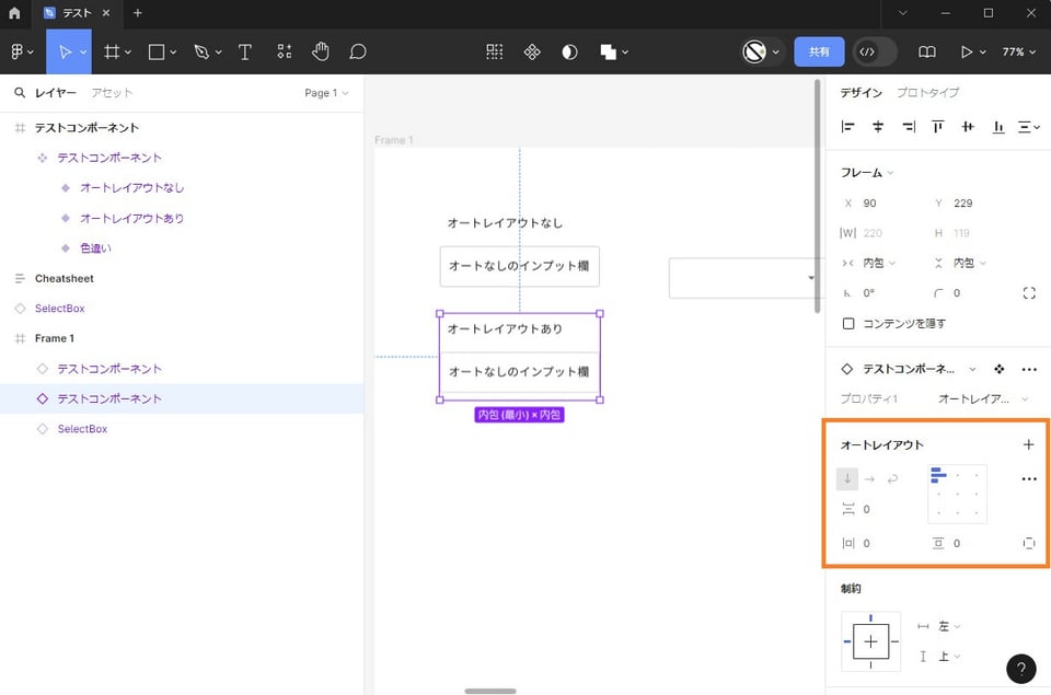 そのため、グループ化されたパーツの中から、どのパーツに、どのようなオートレイアウト設定をするのか?といったことを予め決めておくほうが良いと感じました。