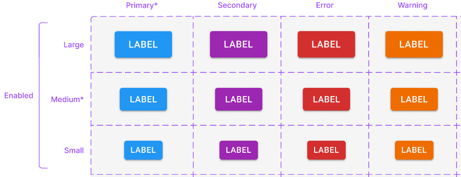 バリアントを活用する際、プロパティ(Type、State、Sizeなど)とその値(Primary、Enabled、Smallなど)の命名が大事です。明確な名前を使うことで、誰が見てもセットの内容が理解しやすくなります。