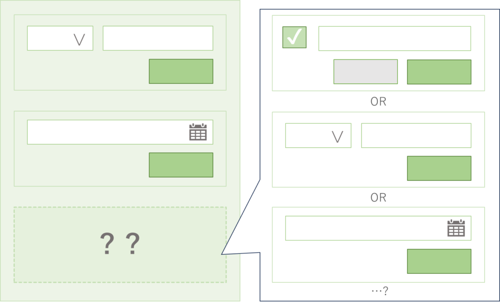 添付した画像のように、ひとつの入力項目に対し、パターンにごとに入力項目数、表示するUI種別などが多様に変わりうるというUIだったのですが、代数的データ型を採用することによって以下のような問題を未然に防ぐことができました。