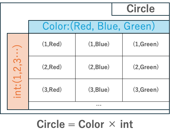 直積型(ProductType)は、いくつかの型をメンバーとして持つ型のことを表すデータ型です。